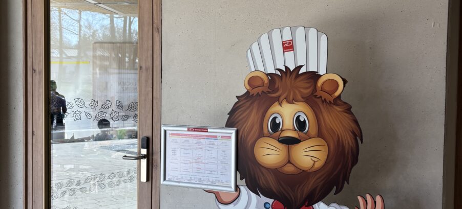 With the help of the Leo mascot, made available by Dussmann Catering, the educators, in collaboration with the kitchen, present the dish of the day to the children in a fun way. The cook takes pictures of the daily meal and hangs it on Leo so that the little ones can clearly see what they are eating at noon. In order to interact more with Leo, children and educators can dress him up or decorate him according to the season, or use him to present regional and seasonal products.